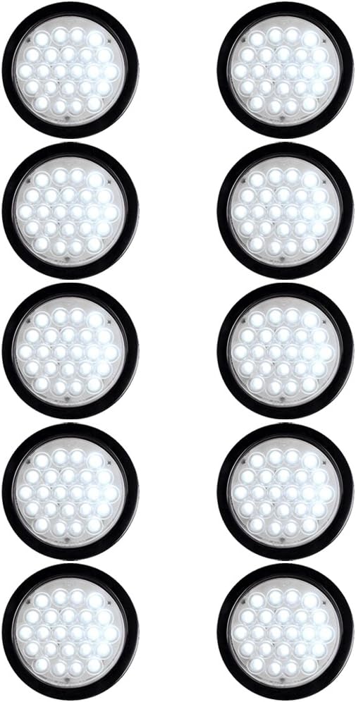 Specifications: PRODUCT INFORMATION: Overview: Function as Turn Signal/Brake/Stop/Rear Parking/Taillights These Lights are Shock Resistant and Less Damaged Water-tight Sealed is enabled to Limit Water and Rust Super Bright LED provides Maximum Visibility, Safety, and Style Our LED Lights are Guaranteed to be the Highest Quality Industry-standard 3-prong plug with 12" wiring Black rubber grommet for easy surface mount setup. Install Easily with Wirings Plug. Condition: 100% Brand New Fitment: Compatible with any applications with DC 12V Such as Semi Truck& Trailer, Service Truck, Bus, Service Van, Utility Truck, Parade Float, Horse Trailer, Utility Trailer, Pick Up Truck, UTE, UTV, etc. PACKAGE CONTENTS: 10PCS Round 24-LED Truck Tail Lights with Wiring Plug SPECIFICATIONS: Size: (with Rubber Cover): Diameter: 5 1/8" (13cm) -- Thickness:1 3/16" (3cm) Lens Size: Diameter: 4" (10cm) Lens Color: Clear LED Light Color: Red Voltage: 12V Wattage: 12W Number of LEDs: 24 Cable Length: 8 17⁄64" (21cm) Material: ABS Housing + PC Lens + Rubber Cover Weight: 0.42lbs | 190g | 6.70oz each light 3 wires connection system: White for Negative, Red for Brake Light, Black for Running Light * NOTES: Please Read All Description and Fitment Before Ordering the Product. Professionals install is strongly recommended to avoid trouble caused by inexperienced installers!