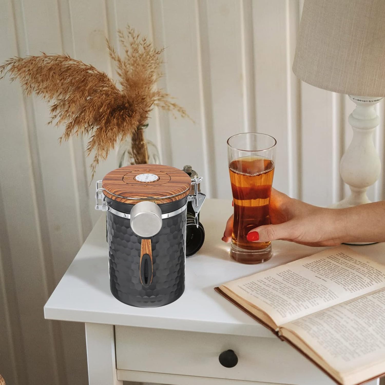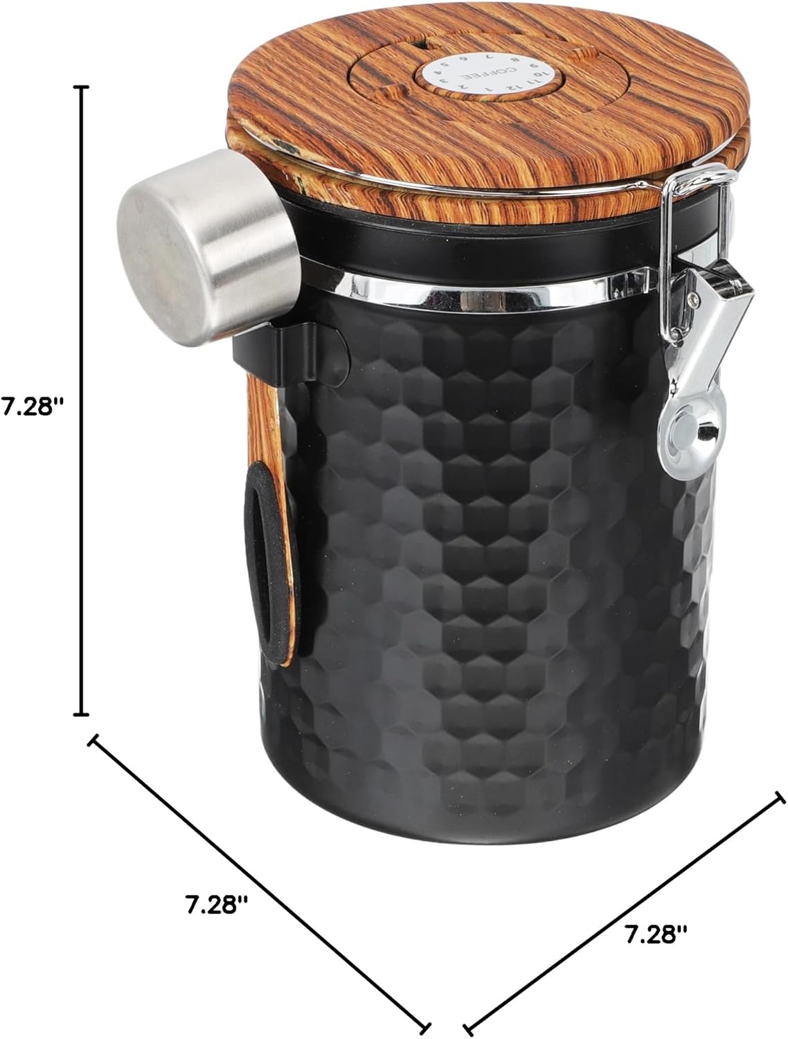 Package List 1 x Airtight Coffee Container Characteristics -Color:Black stainless steel container -Size:18.50X16.00X12.50cm/7.27X6.29X4 loose tea storage. -Material:Stainless steel, wood dry food container with lid -Size:14.00X4.00X2.50cm/5.50X1.57X0 sealed food container. -It can be used for serving and storing tea, beads, coffee, beans, flower tea, jewelry, and so on airtight coffee container. -This canister's lid with handle, and this is a multi-functional storage jar for making your home tidier and well organized coffee canisters with lids. -Smooth surface without burrs, easy to clean without hurting your hands. The capacity is enough coffee storage airtight canister. -It comes with a lid design that has good storage effect and sealing effects, professional and practical coffee bean storage. -The coffee canister is a great storage helper for storing bulk foods easily and saving space efficiently coffee storage container.Goods Descriptioncoffee bean container It can be used to hold candies, mints, chocolate, coffee, crafts, jewelry, tea leaves or some other items you would like to fill.air tight coffee containers This is a Airtight Coffee Container, designed into a simple cylinder shape, multipurpose and practical.tea canister It can be washed and reused, durable and sturdy, providing